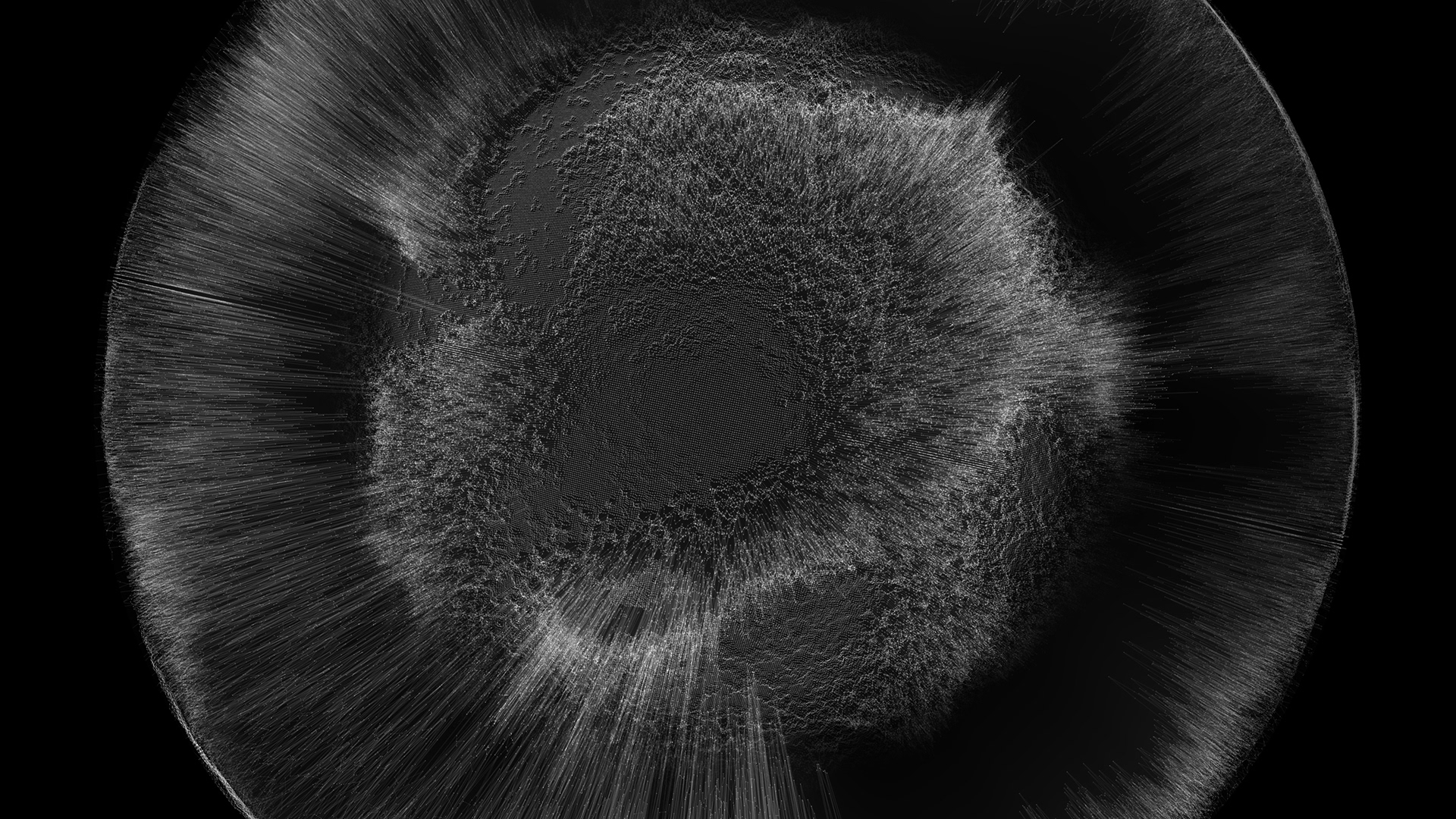 In Latent Space fine lines weave virtual spaces around the viewers. The architecture that manifests is highly fragile — the space grows, shrinks, collapses. The acoustic dimension is also deeply spatial — slowly morphing soundscapes float around the dome, enveloping the observers in sound and image.